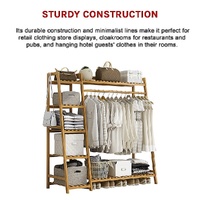 Ample space between the boards on the shelves provides excellent airflow, keeping your garments, accessories, and footwear fresh-smelling and ready to go. The rack features a thick hanging rod, providing enough strength to support even your heaviest suits, jackets, and coats. This rack isn't only for home use. Its durable construction and minimalist lines make it perfect for retail clothing store displays, cloakrooms for restaurants and pubs, and hanging hotel guests' clothes in their rooms. Whether for your home or your customers, this rack is a gorgeous solution to your clothing storage challenges. Get yours today!