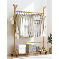 $44.63If you are looking for a simple yet functional portable clothes rack to help you expand your closet space, consider the Randy and Travis Machinery Portable Clothes Rack. It comes complete with extra pegs at both ends so that you can hang your hats, scarves and bags out of the way. Its clean lines and sturdy frame offer plenty of additional storage for clothing that you need to hang. It also features a storage shelf at the bottom for you to organise all of your bulky items such as boxes, shoes, linen and bedding. The simple yet understated natural look of the bamboo is stylish and blends easily into any decor, making it a convenient addition to any home.