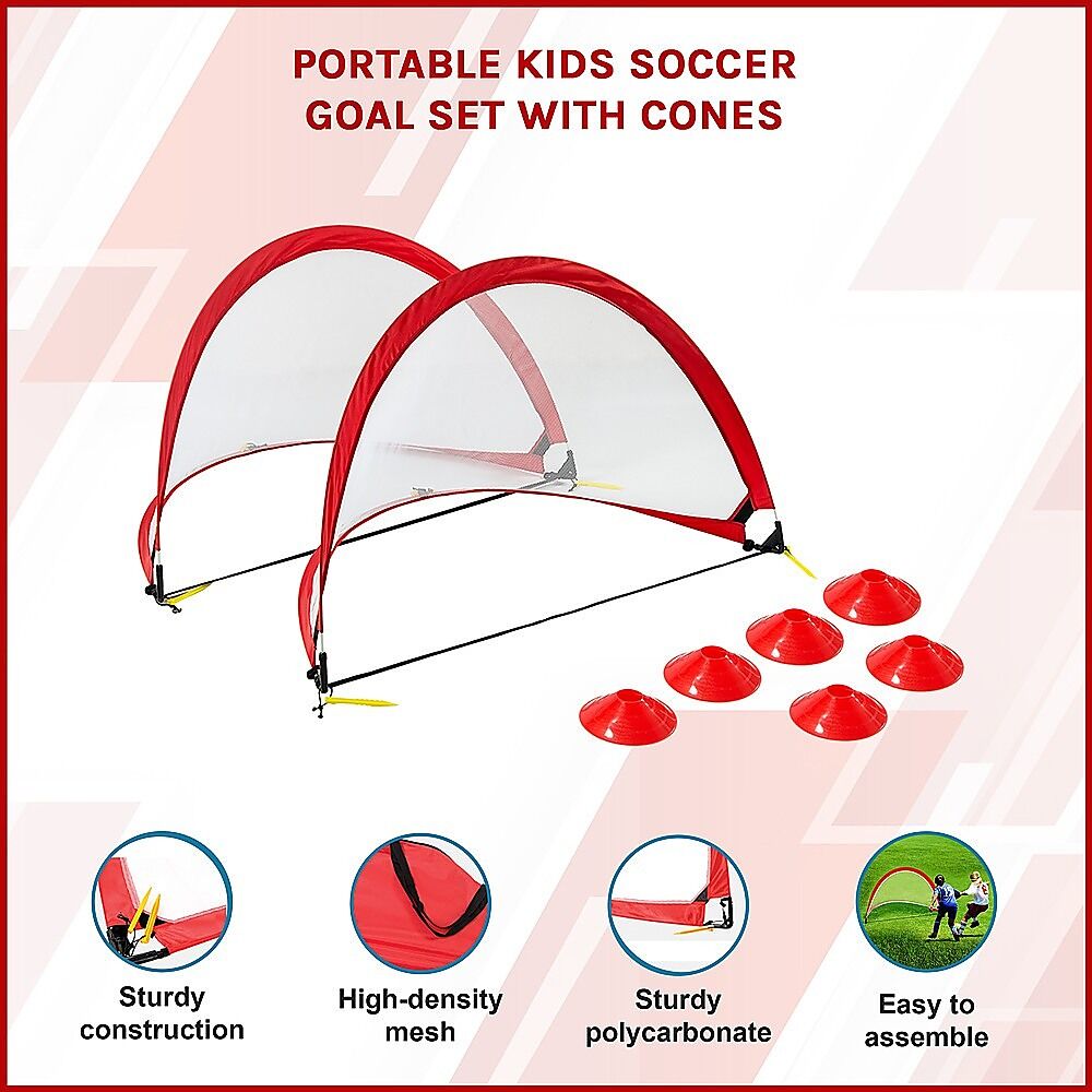 These four-foot-wide soccer goals pop open in mere seconds and even have reflective strips so that your kids can keep playing even when it's dark outside. Take them along when you go to the beach, to the park, or a camping trip for extra family fun. Just fold them back up with a simple twist when you're done, pop them in the bag, and they'll be ready for the next time you want to play. This set is the perfect gift to surprise your kids for birthdays, holidays, for getting great marks at school, or just to say I love you'. Order your set today!