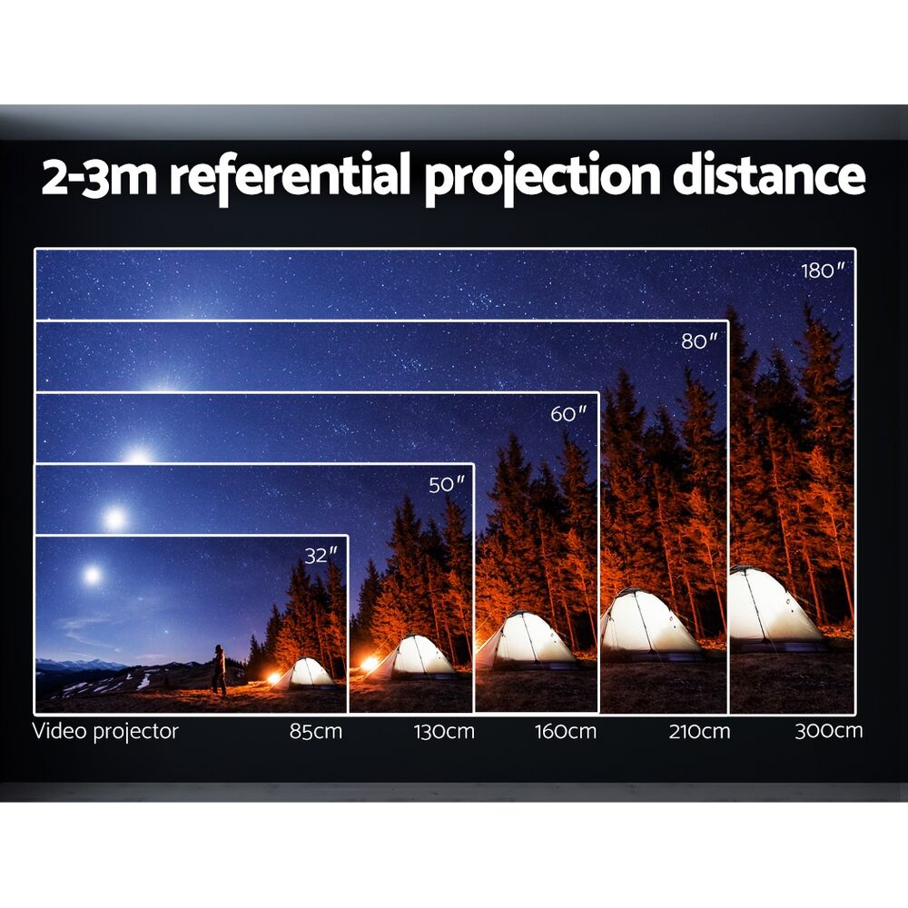 $131.39From the small screen to the big screen, now you can enjoy epic entertainment with our Devanti Video Projector. With its ultra-expansive colour gamut, the projector delivers crisp clear images with more brilliant colours to give you the best projection experience. The projector is compatible with 1080p and 4k, so you won't have to compromise on quality. Using 2.4G Wi-Fi connectivity, our video projector effortlessly supports screen mirroring from your Phone, Pad, smartphone, tablet or laptop, so you can stream content cable-free. It features a built-in speaker for clear sound, electrical zoom by remote so you can get a closer look, and a 360-degree flip for flexible viewing. For even more entertainment value, the projector includes HDMI, USB, AV and audio ports for fast connection to multiple devices such as external speakers, game consoles and hard disks. Get the home cinema experience and order today! Include remote control and additional AV audio and HDMI cables.