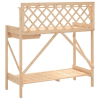 This potting bench is perfect for organising and displaying your potted plants at home, in a garden, on a patio, or on a terrace. Sturdy and durable: This potting bench table is made of solid fir wood, which makes it durable and long-lasting. Versatile storage space: The potting workbench with open shelves, a top rail, metal hooks on the side, and a drawer provides sufficient space for related goods such as small gardening tools, soil, fertilizers, etc.Decorations: The potting bench has a trellis, which provides upward growing space for climbing plants. Meanwhile, the diamond lattice trellis is suitable for hanging basket plants or decorations to embellish your garden.Ventilated: This bottom shelf with a slat design can allow water flow, which is not easy to rot and has a long service life.Multiple applications: The garden potting bench can not only bring a sense of nature to your space but can also be a perfect addition to your courtyard, garden, greenhouse, and more. Good to know:To make sure your outdoor furniture stays beautiful, we recommend protecting it with a waterproof cover. Warning:To prevent it from tipping over, this product must be used with the provided wall attachment device.