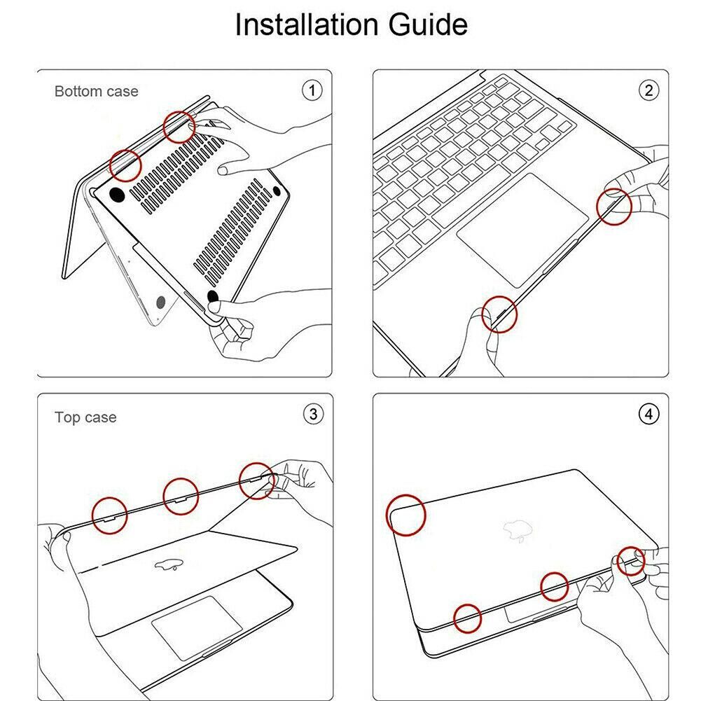 Two pieces of folio design, easily clips to your MacBook with upper and bottom cover. Made from sturdy polycarbonate material, slim, lightweight and seamless, which is very flexible and durable, not esaily broken.