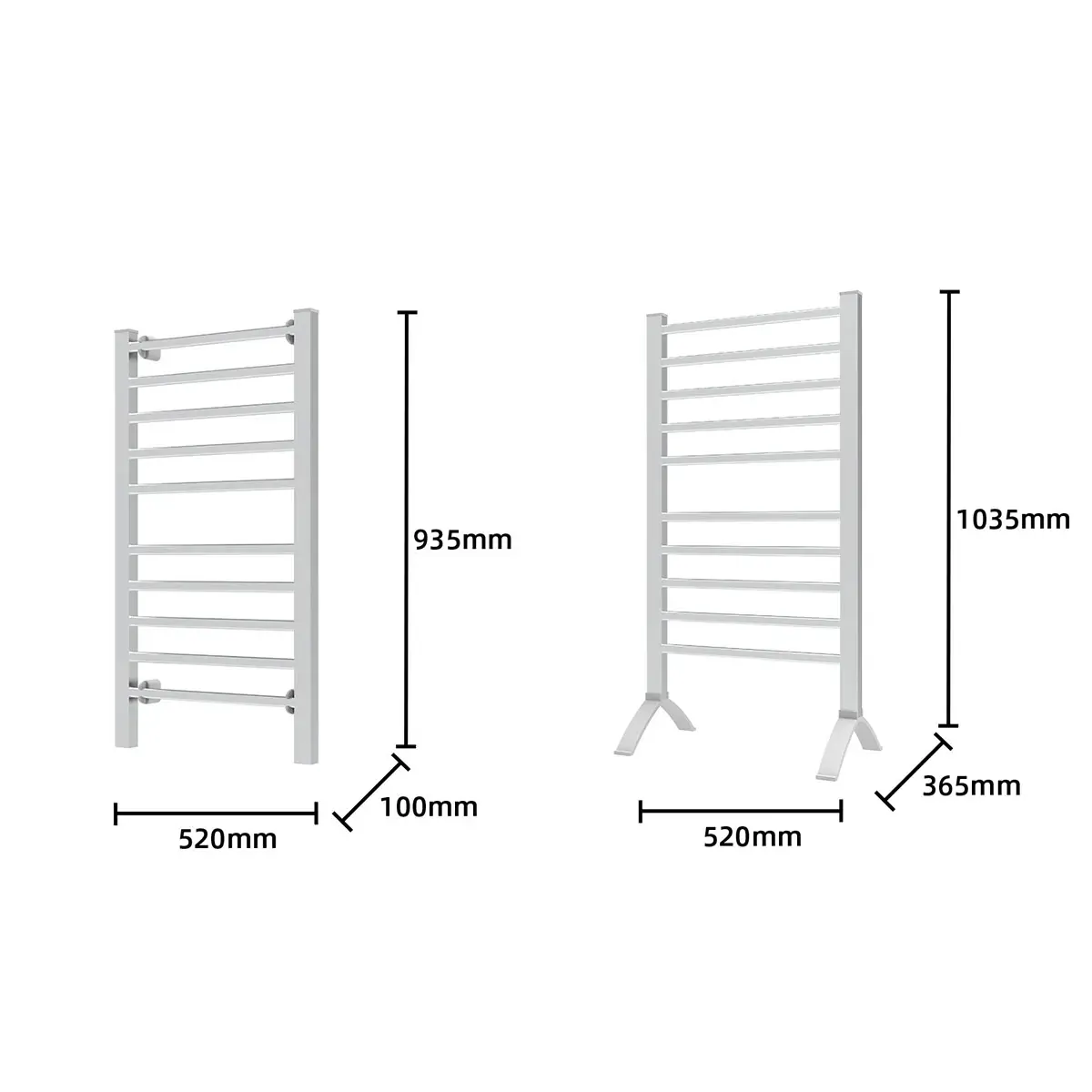 Made with durable aluminum, this electric towel rail is both elegant and functional. It is compact and easy to assemble, with a splashproof, versatile design. It comes with a wall mounting kit and stand, so you can choose the ideal setup for your bathroom. When switched on, the rails maintain a temperature of 45C to 55C, warm enough for the thickest towels but still safe to the touch.