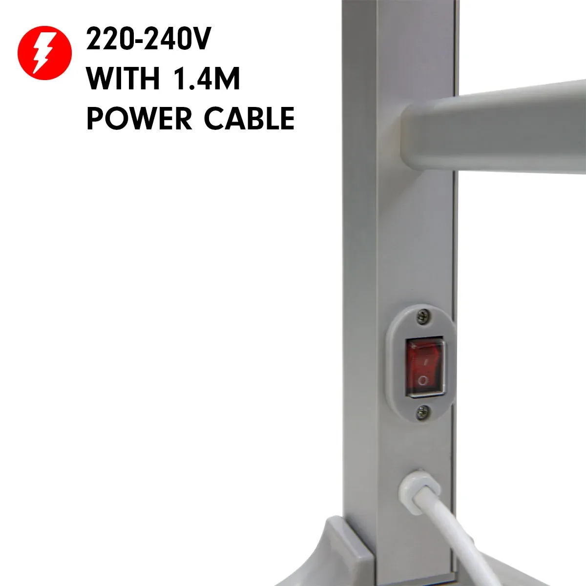 The horizontal design allows for even drying and warming, making this rack energy-efficient. It is also quiet and easy to use, with a waterproof power switch, 1.4m cable, and standard Australian plug. And it is multifunctional too, with plenty of space to hang your clothes and towels!