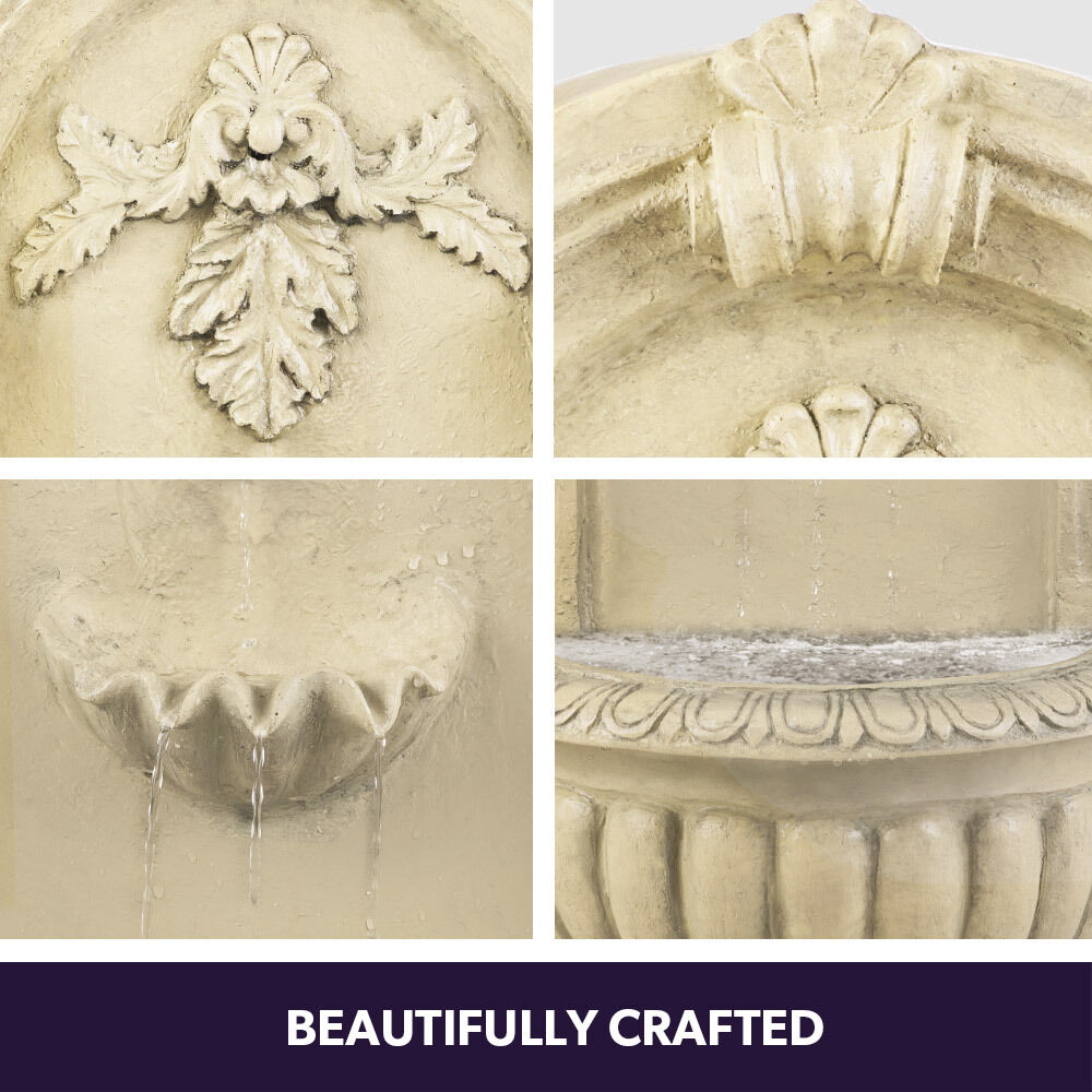 Create a beautiful calming focal point in any garden with this traditional style Solar Powered Water Feature from PROTEGE. This elegant water fountain is crafted from premium Polyresin for the aesthetic of stone and carefully crafted details, without the weight or risk of chipping. It is easily assembled in less than 5 minutes, and can be attached to a wall with a sturdy hook, or it can sit on a surface.