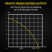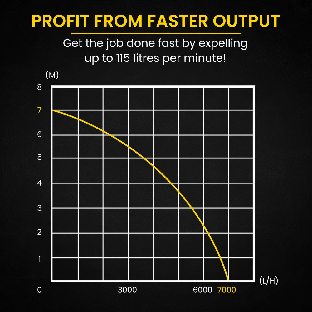 This exceptional pump brings enormous capacity in a compact unit. With a powerful 400 watt motor, it can expel up to 7,000 litres per hour, and has an impressive 7 metre maximum head capability!