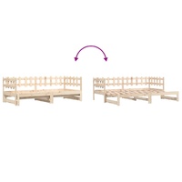 $197.09This versatile wooden day bed can be used as a bed in your bedroom and also fits perfectly as a sofa in your living room. Solid pinewood: Solid pine wood is a beautiful natural material. Pine wood has a straight grain, and the knots give the material its signature, rustic look. This guest bed is made of solid pine wood, more stable and durable. Slatted design: The wooden slatted base provides better air circulation to keep the mattress fresher for longer, improving the weight capacity of the bed and ensuring stability. Easy usage: This sleepover bed is very convenient to use and does not require a box spring or foundation. Just place the mattress on top and enjoy a restful sleep or sitting time! Pull-out sofa bed: This wooden day bed can be used as a sofa during the day or as a bed at night, providing a quick solution for hosting overnight guests while saving space. Good to know:Mattresses are not included with this bed. We do offer a various selection of mattresses. You can check our shop for matching mattresses.
