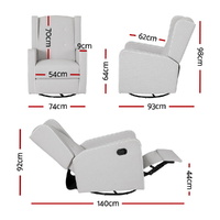 $363.59Discover true relaxation with our Artiss Recliner Chair. Expertly crafted for maximum comfort, its plush cushioning and ergonomic design make it the ideal spot to unwind after a busy day. Featuring a remote-controlled 155-degree reclining mechanism, you can sit back and relax with ease. With sleek aesthetics and durable construction, this chair seamlessly blends functionality with style. A retractable footrest allows for complete leg support. Use your Artiss Recliner Chair in the living room, library, bedroom or nursing room for a relaxing moment anywhere. Elevate your lounging moments with the Artiss Recliner Chair.
