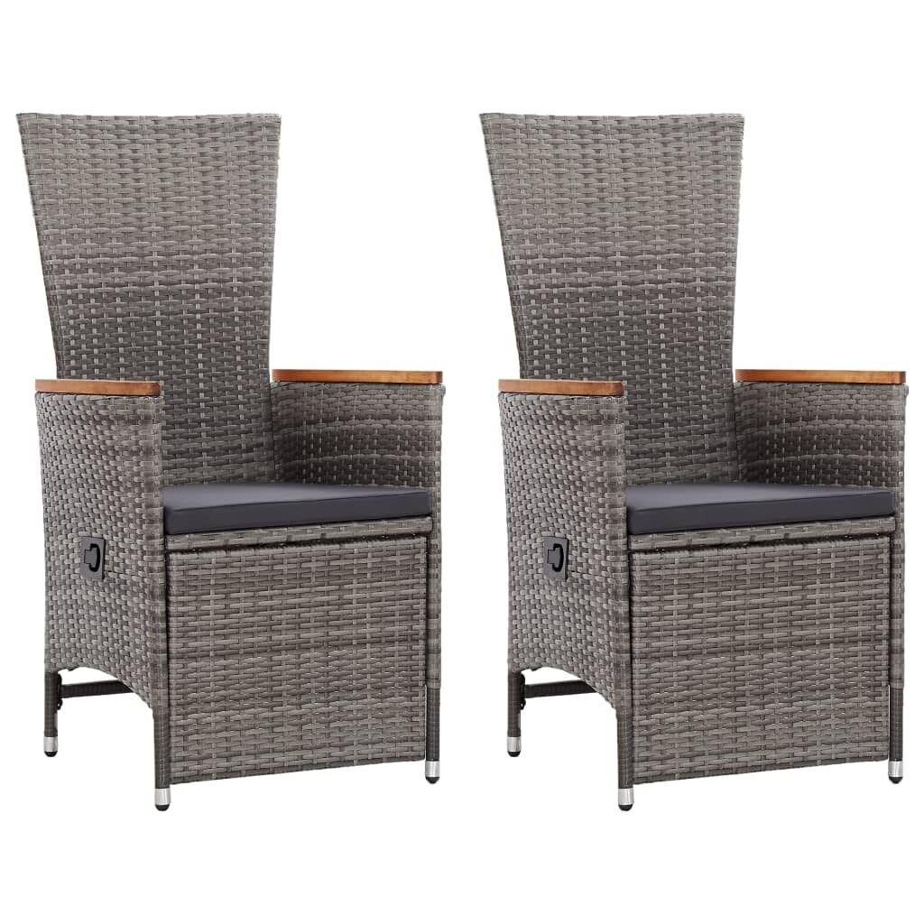 $190.60Our stylish poly rattan garden reclining chairs will become the focal point of your garden or patio! These dining chairs have an elegant, contemporary design and will be a great choice for al fresco dining or relaxing in the garden. Made of weather- and water-resistant PE rattan, the outdoor seating is easy to clean, hard-wearing and suitable for daily use. The powder-coated steel frames make them strong and sturdy. The armrests are made of acacia wood, a tropical hard wood, which will bring a rustic charm.Thanks to the adjustable design and gas lift mechanism, the backrest and footrest can be adjusted to fit your positions. By touching the button on the side, the backrest will recline and the footrest will move up at the same time, for a comfortable lying position. Thanks to their lightweight construction, garden recliners are easy to move. The thick, soft, foam-filled seat cushions are highly comfortable and made of water-repellent polyester. The cushion covers with zips can be easily removed and washed. Note: We recommend covering the set in the rain, snow and frost.