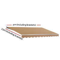 Measuring 4m x 2.5m, our folding arm awning comprises a powder-coated aluminium frame and a high-quality polyester fabric shade. Both frame and shade are made UV-resistant and designed to be durable and longlasting in all kinds of weather conditions(Only for normal weather condition,extrem weather condition is excluded).