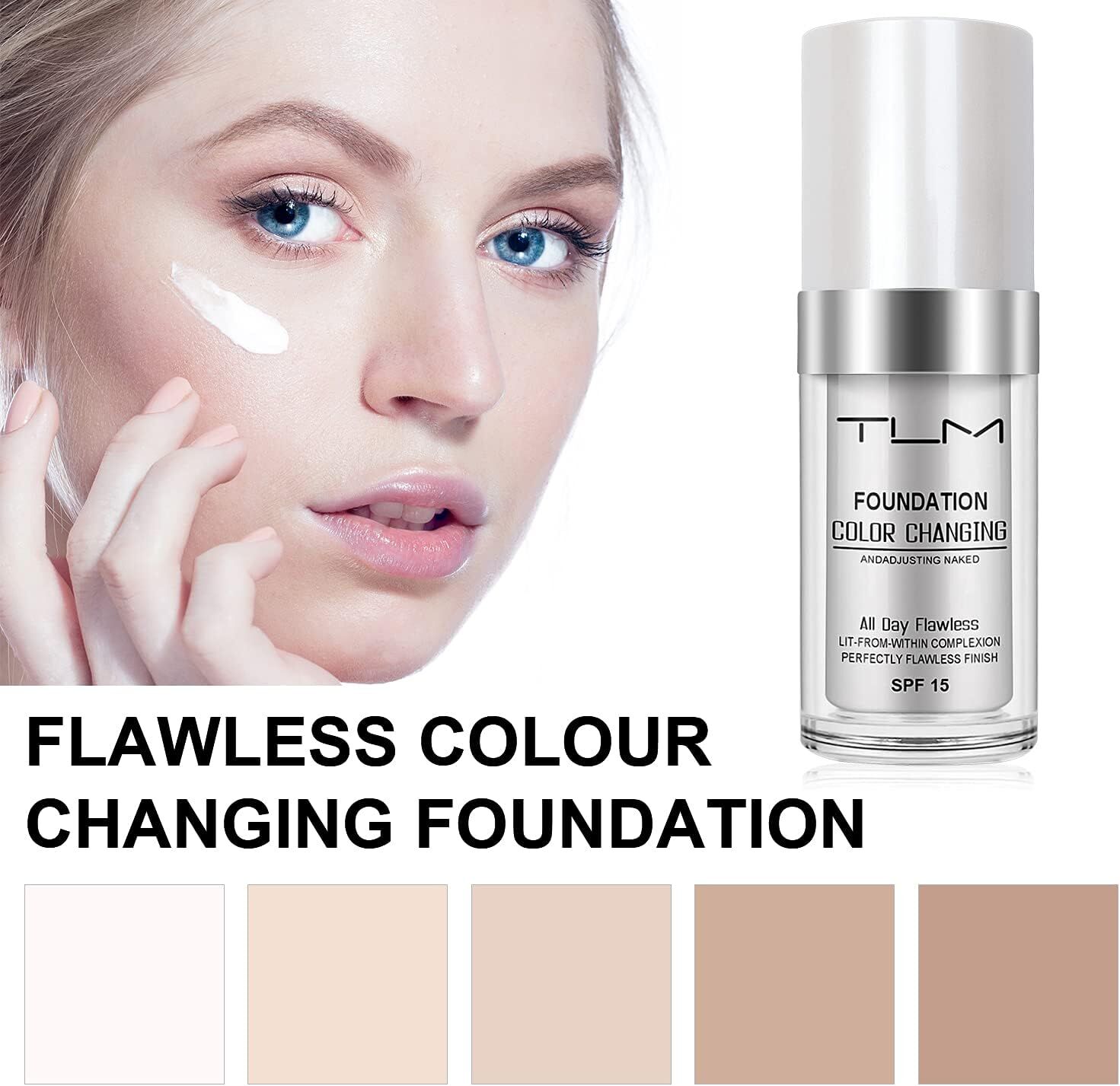ReviGLam TLM Colour Changing Liquid Foundation Hides Wrinkles & Lines, BB Cream Makeup Base Concealer Cover Moisturizing Fluid for all Skin Tone SPF15