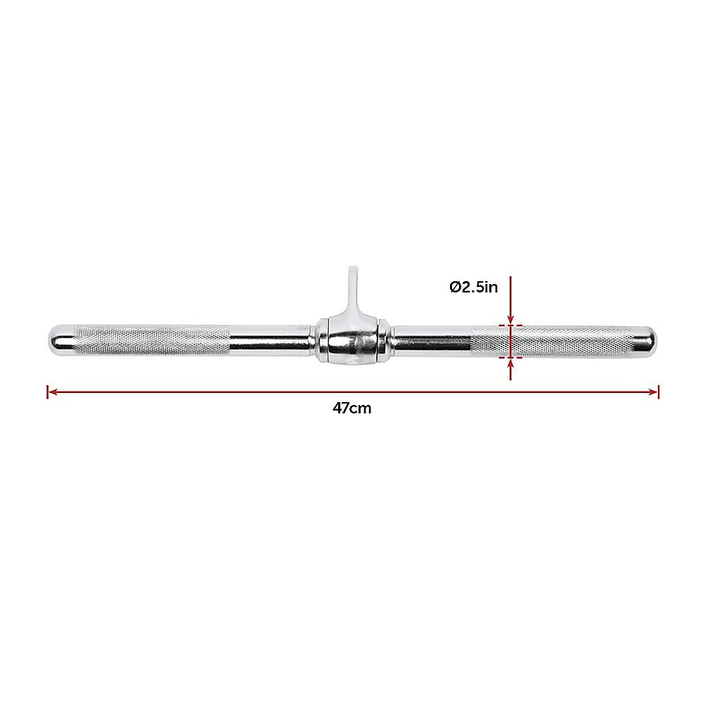 While maximizing the effectiveness of your training, an intense isolated workout focused on a variety of muscle groups is one of the benefits of the Revolving Straight Bar. Enjoy the best and most effective cable exercises you have ever experienced with the addition of this product to your workout regimen. The cable attachment is versatile and can be used at the gym or at home. Take your fitness training to the next level with the Revolving Straight Bar. It will expand your workout training to include a wider range of exercises that will help build the rock solid body you want!