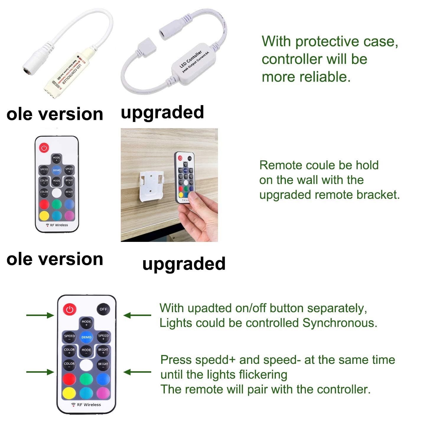 Dimmable and safe:20 static colors, 19 dynamic modes, dimmable with RF remote control, DC adapter, safe to touch.