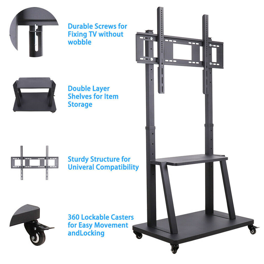 Rolling TV Stand 32-100 w/ Adjustable Mount & 2-Tier Shelf