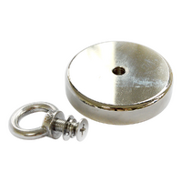 The countersunk hole allows many types of mounting applications including hook, knob, or included eyebolt. Screw it into a wall to hold tools, or position and hold lights, signs, and more. This type of magnet is also perfect for magnet fishing and retrieving applications.