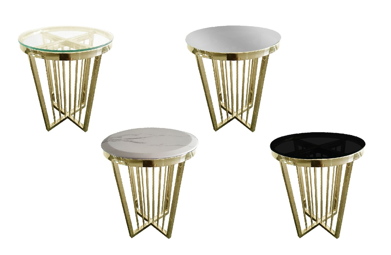 Available in polished steel gold frame with tempered black glass top.
