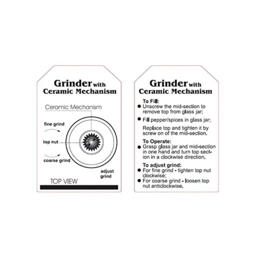The ceramic grinder mechanism can be adjusted from fine to course grinding, and can be used for various herbs, spices and peppercorns.