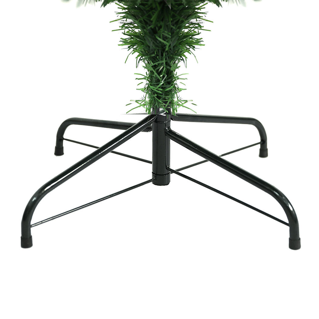It comes with a stable steel base for added security. Installation is a breeze - simply place the base down, insert the trunks into each other, and fluff the branches out.