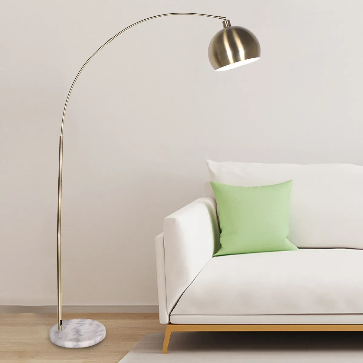 Sarantino Arc Floor Lamp Antique Brass Finish with Marble Base