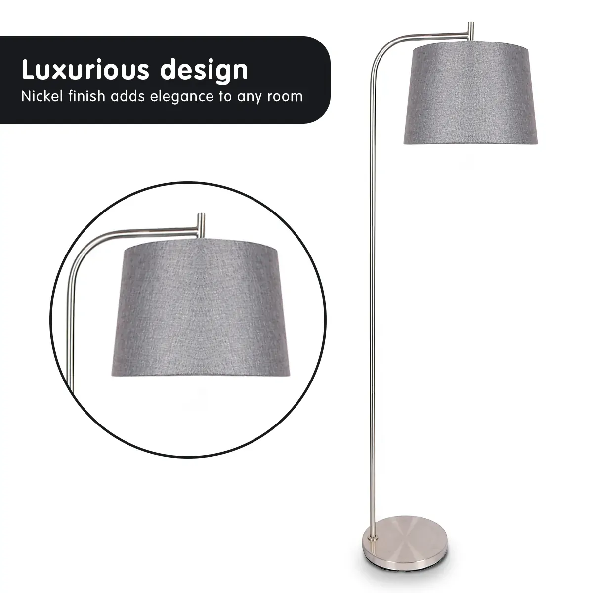 Sarantino Metal Task Floor Lamp Nickel Finish with Grey Fabric Shade