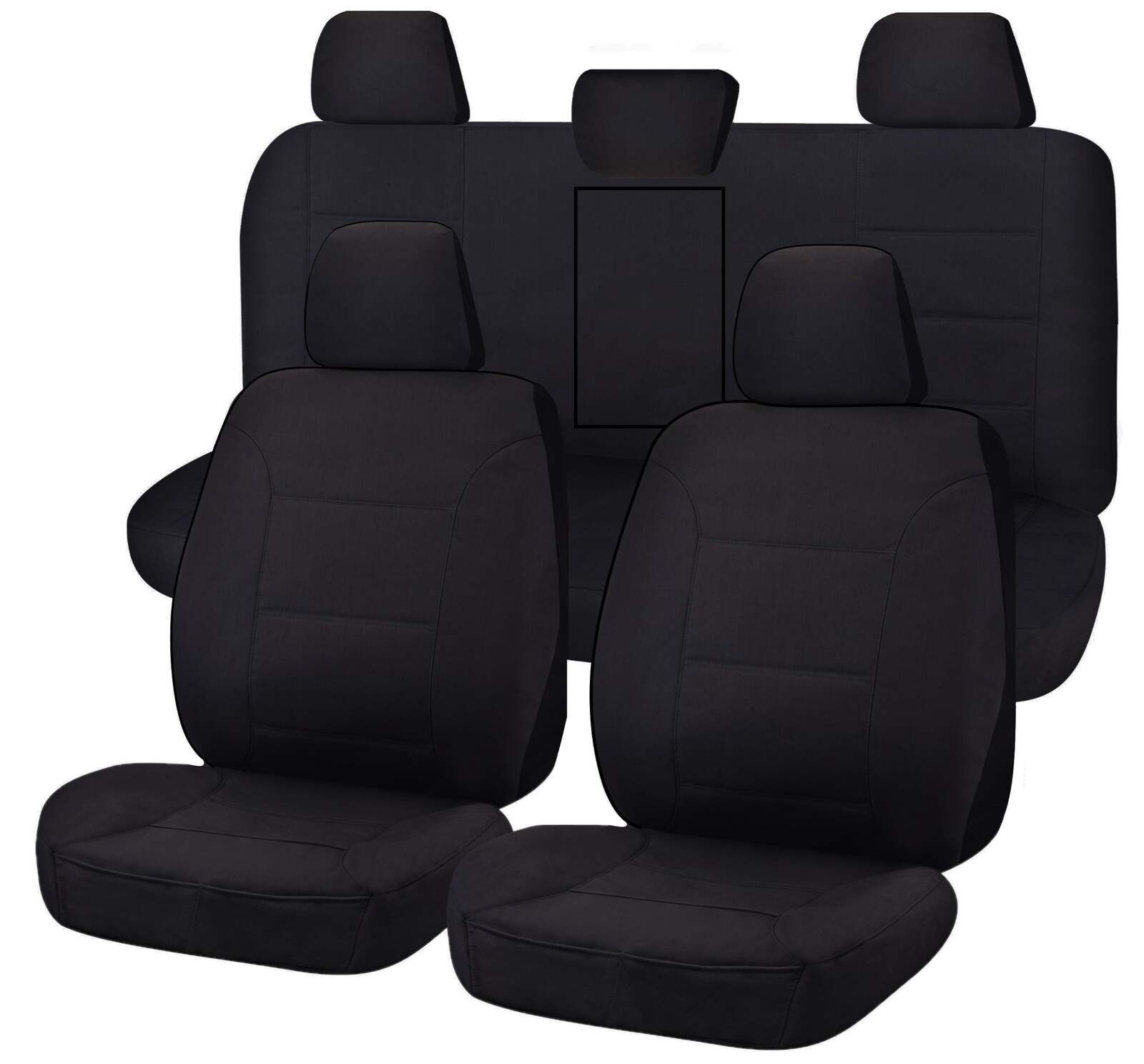 Front and rear seats including headrests.