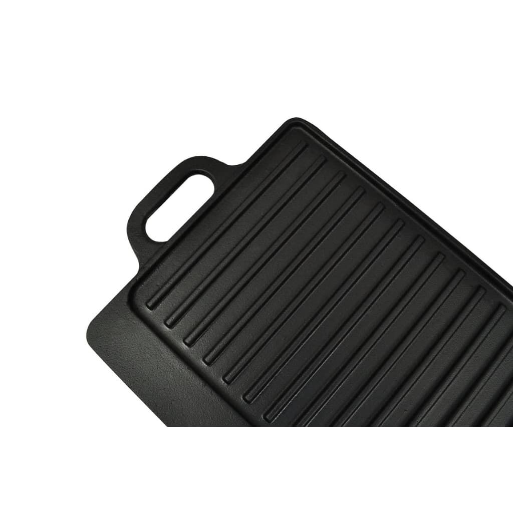 $68.39Our quality set of two cast iron reversible BBQ/Pizza Platters will make cooking a joyful experience! Each platter measures 46x23 cm. It is double-sided, so it meets different cooking needs. The smooth side can be used for baking pizza, toasting sandwiches, frying omelettes, eggs, bacon, chopped vegetables and more. The ribbed side of the Platter requires no oil or fat while cooking, so it is ideal for grilling fish, meat, steak, etc for a healthier meal. Such designalso allows fat to drain away from the food, so you can easily serve seared, restaurant style look dishes. The Platter is also suitable to be used in the oven. There is one practical handle on each end. The Platter has been pre-treated and will guarantee years of dependable service. The cast iron platter is non-stick and heat-conducting. For maintenance, make sure to follow the care instructions and tips. It should be cleaned with hot water and without detergent. It is not dishwasher-friendly. Delivery includes a set of 2 BBQ/Pizza Platters.