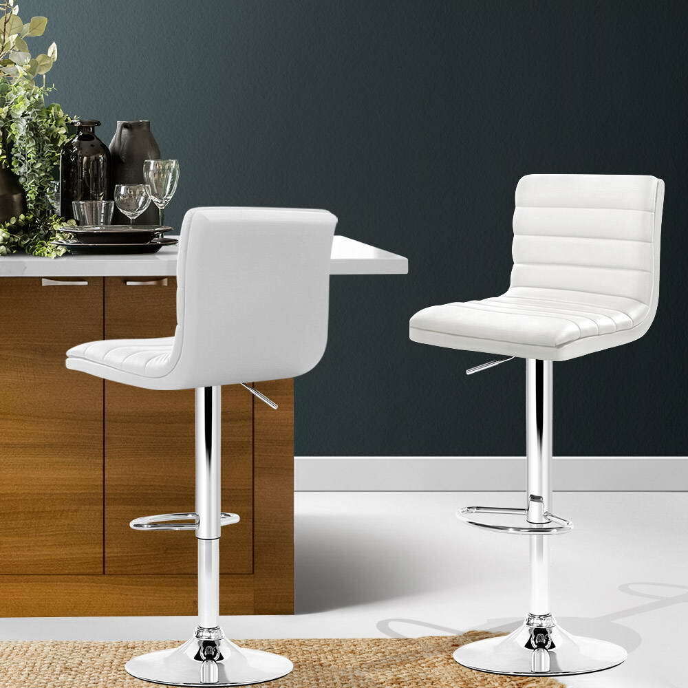 With the classic design and contemporary good looks, these bar stools are a must for anyone who wants to update their living or dining space. Upholstered in faux leather, they also feature an extra thick foam padded seat for ultimate comfort. The semi-circular footrest ensures relaxed sitting while the omni-directional seat makes for easy turn to any facing, and the height can be easily adjusted with the SGS-tested gas lift lever. Lastly, a floor protector under the base helps to keep your pristine floor scratch-free at all times.