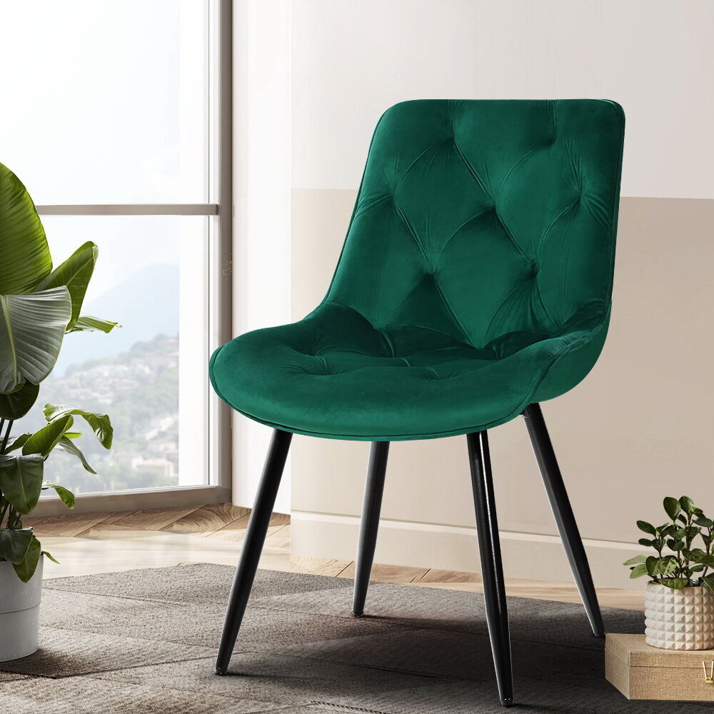 Wine, dine, and entertain guests with our meticulously designed dining chairs. They make a luxurious addition to any dining space and will make your guests envious of your gorgeous dining ambience. Not just for your dining room, these dining chairs are sure to make a statement in your study room, living room, and dressing room. Their versatility and ultra-modern design make them stand out. Incredibly stylish and sophisticated, our dining chairs feature inner solid wood construction with plush velvet upholstery that ensures lasting quality. It comes with solid steel legs with an anti-slip feet pad for ultimate stability and keeping your floors scratch-free. The dining chairs flaunt plush seats made with high-resilience foam that offer incredible comfort and support, and the cushioned back support allows you to dine comfortably. Our dining chairs can hold up to 150kg weight, and their reinforced steel fixings make them super stable and reliable. Our dining chairs are certainly a big bang for your buck. Bring home this luxurious set of dining chairs without any hesitation.