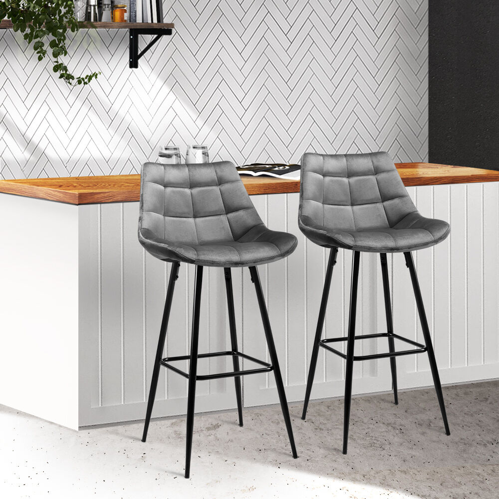 With its velvety and steely overtones, our Artiss Audrey Bar Stool is designed to look and feel good with every sitting. Meticulously crafted with heavy-duty metal with chic matt black finish, the bar stool features a tufted rich green velvet fabric integrated seat and backrest that feel comfortably smooth and look absolutely classy. The contoured backrest also provides appreciable support while the anti-slip rubber feet keep the bar stool firm and steady even with robust use. Not least, the metal footrest lets you perch in style, feet up. Perfect for your home, office, bar or cafe, our bar stool is a masterpiece of creative flair in more ways than one.
