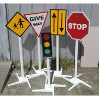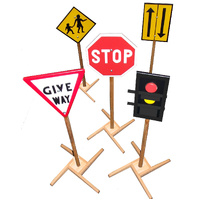 $205.52This set of Traffic signs offers a fabulous complement with bike rides. This set of 5 road safety signs will assist children becoming road safety aware. This set also great for Role play, which helps children to develop language and communication skills. It develops and promotes creativity and imagination. This resource also promotes social interactions, teaches daily routines ans skills. The set includes 5 signs basic signs: STOP, GIVE WAY, 2 WAYS, CHILDREN CROSSING and a traffic light that can change lights.Some basic assembly of the road signs is required. All signs are made of solid plantation timber and child safe materials.