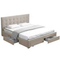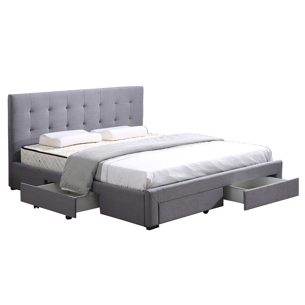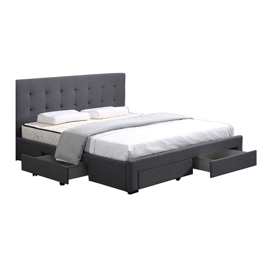 If you're looking to for an attractive bed keep your space clutter-free, our fabric bed with storage drawers is the perfect choice for you. The frame is constructed with a sturdy wood frame that's wrapped with cotton and linen fabric will look stunning in any bedroom in your home. Not only does it provide a stylish place to sleep, but the storage drawers will help you keep your space clutter-free.
