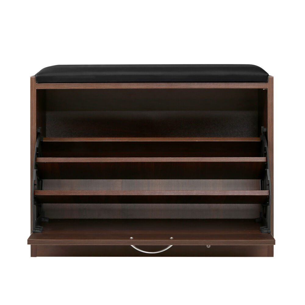 $73.14Get yourself a shoe cabinet with an aesthetic difference. Our Artiss Shoe Storage Bench adds a touch of luxury and multi-functionality to the ubiquitous shoe cabinet. On first impression, it looks just like a plush PU leather stool. Pull down the front panel and you find three tiers of adjustable shoe shelves with ample space for up to 15 pairs of various footwear (depending on shoe sizes). Made from quality particle board, the bench is sturdy and finished in melamine for durability and easy maintenance. Not least, its thoughtful design means that you can place it in your hallway or entrance for a neat and tidy look that blends seamlessly with your home decor. So remove the clutter and get organised with our shoe storage bench. We are sure it will fit right in with your discerning taste for all things stylish and chic.