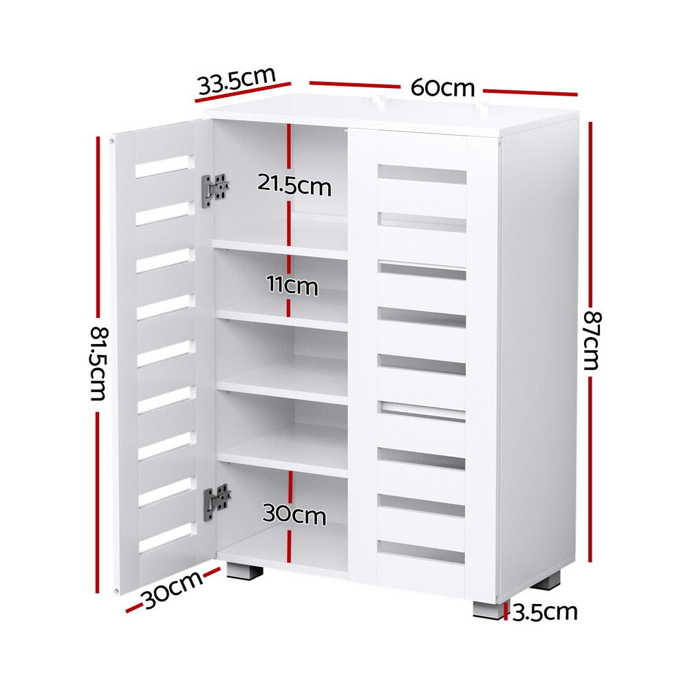 $109.24Discover seamless organisation with our Artiss Alster Shoe Cabinet. Featuring durable construction, a melamine finish, and two compartments with storage space for up to 20 pairs of shoes, it marries style with functionality - transforming clutter into a tastefully organised display in your entryway. With five storage tiers and three adjustable shelves, you can accommodate all different types of shoes and other accessories. The ventilated doors are perfect to encourage proper airflow and prevent mould and mildew, and they're set on heavy-duty hinges and magnetic door fittings for long-lasting use. Best of all, you purchase includes an anti-tip kit for safety. Enjoy your new organised and tidy hallway with the Artiss Alster Shoe Cabinet.
