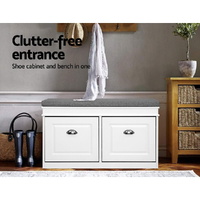 $104.49Get yourself a shoe cabinet with an aesthetic difference. Our Shoe Cabinet Bench blends two functions into one elegant piece. On first impression, it looks just like a plush stool. Pull down the two front panels with their retro-style metal cup pull handles and you find two tiers of adjustable shoe shelves with ample space for up to 12 pairs of various footwear. Made from quality E1 MDF, the bench is sturdy and finished in smooth NC lacquer for durability and easy maintenance. Not least, its thoughtful design means that you can place it in your hallway or entrance for a neat and tidy look that blends seamlessly with your home decor. So remove the clutter and get organised with our shoe cabinet bench. We are sure it will feet right in with your discerning taste for all things stylish and chic.