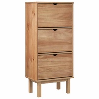 $222.29With this delicate and sturdy wooden shoe cabinet, you can store your shoes effectively and also add practical decor to your home. Solid pine wood: Solid pine wood is a beautiful natural material. Pine wood has a straight grain, and the knots give the material its signature, rustic look.Stable frame: The wooden frame ensures sturdiness and stability.Ample storage space: The shoe storage has 3 flip-drawers with 2 rows of space for each, providing ample storage space for keeping your shoes and other items well organised.Sturdy top: The top of the shoe cupboard can also be used to display your favourite decorative objects. WARNING:In order to prevent overturning, this product must be used with the wall attachment device provided. Note:Each product comes with an assembly manual in the box for easy assembly.