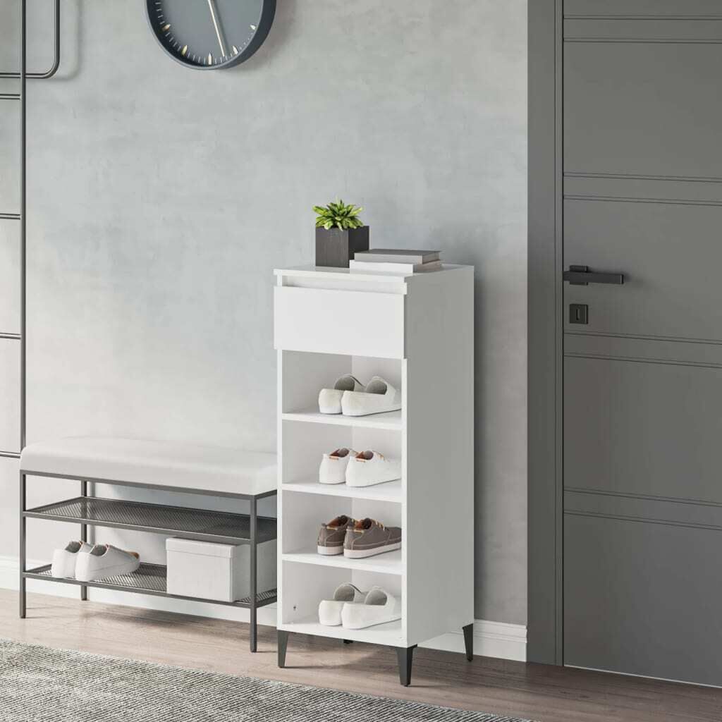 $73.79Keep your shoes away from cluttering to create a tidy environment with this elegant shoe rack! Durable material: The engineered wood is of exceptional quality with smooth surface and also features strength, stability and resistance to moisture. Stable frame: The metal feet of this shoe cabinet add an industrial and calm style to your interior while ensuring stability. Ample storage space: This shoe storage features a drawer and 3 shelves, providing ample space to keep your shoes within reach and well organised. Sturdy top: The sturdy top of the shoe storage cabinet is ideal for displaying decorative objects, photo frames, or potted plants. Warning:In order to prevent overturning, this product must be used with the wall attachment device provided. Note:Each product comes with an assembly manual in the box for easy assembly.