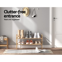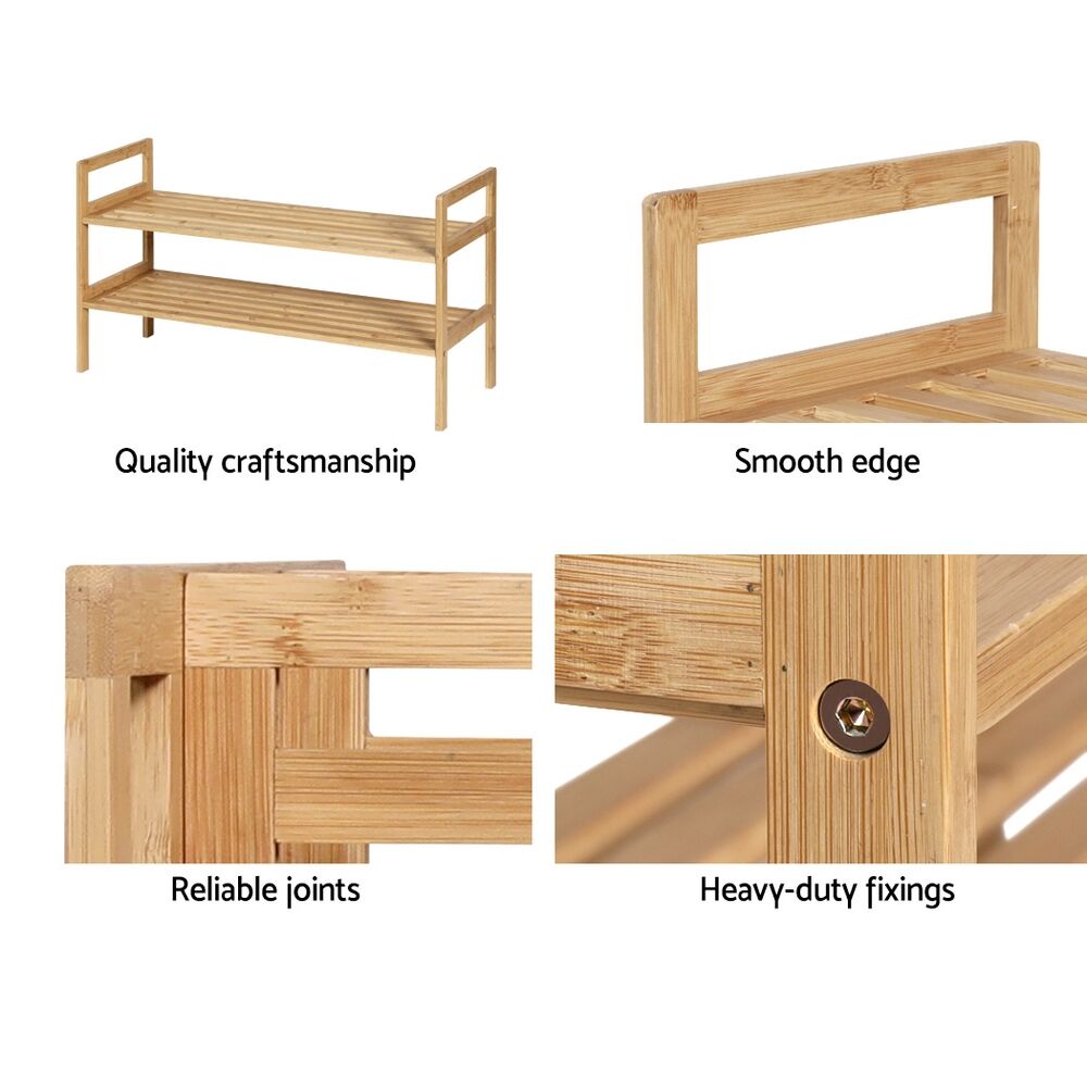 $43.69The Artiss Hina Shoe Rack will help you keep the home neat and tidy without compromising on style. With its sturdy quality bamboo frame and smooth, clean surface, you can trust the shoe rack to keep your daily essentials at hand. natural wood grain colour will blend in with most interior styles. The two-tier open shelves give you plenty of room for essentials, while gaps along each shelf encourage proper airflow to prevent dampness, mould and mildew. The rack can store up to six pairs of shoes to keep the whole family organized. With simple assembly instructions, your hallways will be clutter-free in no time. Get yourself an Artiss Hina Shoe Rack and never lose your shoes at home again.