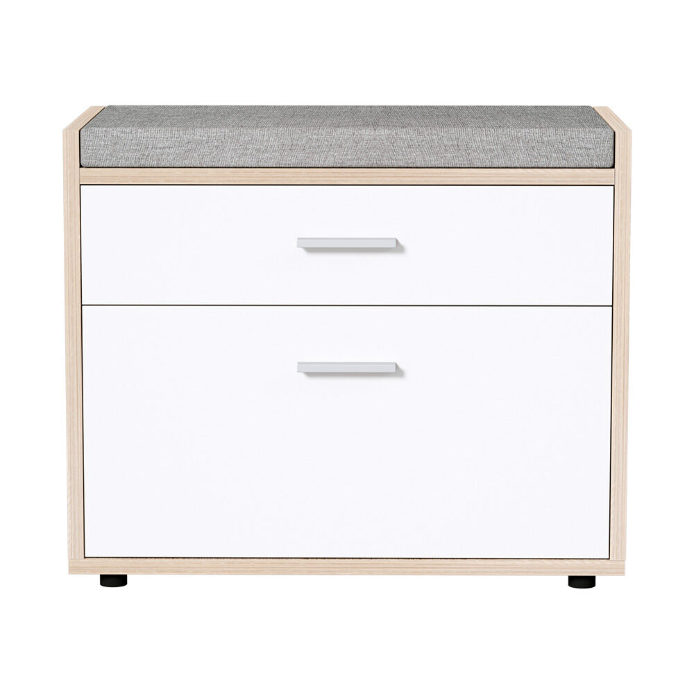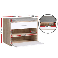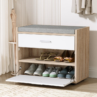 $94.04Get yourself a shoe storage cabinet with an aesthetic difference. Our Artiss Shoe Storage Bench blends two functions into one elegant piece. On first impression, it looks just like a plush stool. Pull down the bottom cabinet door and you find two tiers of shelves with ample space for 6 to 8 pairs of various footwear. Plus, the panel in the middle is adjustable or removable for bigger shoes. There is also a spacious top drawer with smooth anti-rust runners for all your other footwear essentials such as shoe polish and spare shoelaces. Made from quality particle board, the bench is sturdy and finished in smooth paper veneer for durability and easy maintenance. Best of all, its thoughtful design means that you can place it in your hallway or entrance for a neat and tidy look that blends seamlessly with your home décor. So remove the clutter and get organised with our shoe storage bench. We are sure it will feet right in with your discerning taste for all things stylish and chic.