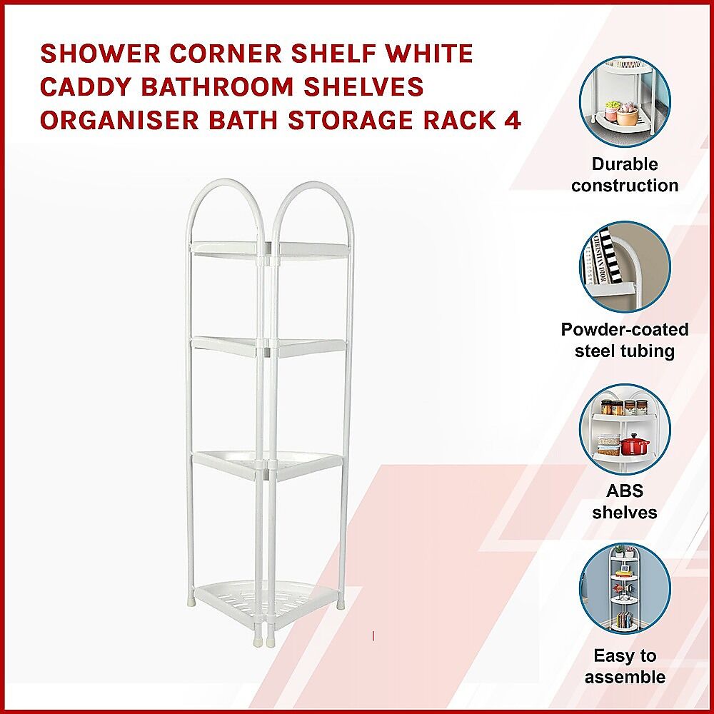 With this white corner shelf caddy from Randy Travis Machinery, you'll enjoy four shelves of streamlined beauty todisplay your soap, shampoo, and other bath accessories. You keep your favourite productsclose at hand, yet out of the way of your personal shower space, thanks to its corner design.