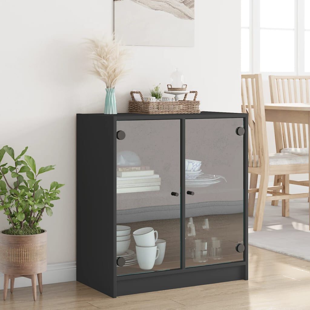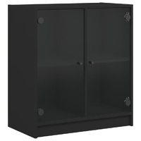NOW $114.34This side cabinet, featuring a timeless look, is meant to be an excellent addition to your home. Durable material: The engineered wood is of exceptional quality with smooth surface and also features strength, stability and resistance to moisture.Ample storage space: The cupboard offers ample storage space for keeping your various daily essentials well-organised and within easy reach.Displaying function: The top of the storage cabinet is great for displaying your decorative items, photo albums or small plants.Practical glass doors: Keep your space clutter-free by hiding small essentials behind the doors of the cabinet. In addition, the glass doors allow you to see inside the storage cabinet to display items beautifully. Warning:To prevent it being overturned, this product must be used with the provided wall attachment device.