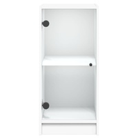 $81.89This side cabinet, featuring a timeless look, is meant to be an excellent addition to your home. Durable material: The engineered wood is of exceptional quality with smooth surface and also features strength, stability and resistance to moisture.Ample storage space: The cupboard offers ample storage space for keeping your various daily essentials well-organised and within easy reach.Displaying function: The top of the storage cabinet is great for displaying your decorative items, photo albums or small plants.Practical glass doors: Keep your space clutter-free by hiding small essentials behind the doors of the cabinet. In addition, the glass doors allow you to see inside the storage cabinet to display items beautifully. Warning:To prevent it from tipping over, this product must be used with the provided wall attachment device.