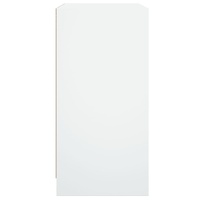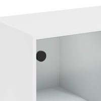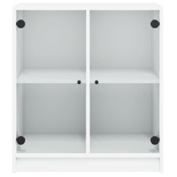 $121.49This side cabinet, featuring a timeless look, is meant to be an excellent addition to your home. Durable material: The engineered wood is of exceptional quality with smooth surface and also features strength, stability and resistance to moisture.Ample storage space: The cupboard offers ample storage space for keeping your various daily essentials well-organised and within easy reach.Displaying function: The top of the storage cabinet is great for displaying your decorative items, photo albums or small plants.Practical glass doors: Keep your space clutter-free by hiding small essentials behind the doors of the cabinet. In addition, the glass doors allow you to see inside the storage cabinet to display items beautifully. Warning:To prevent it being overturned, this product must be used with the provided wall attachment device.