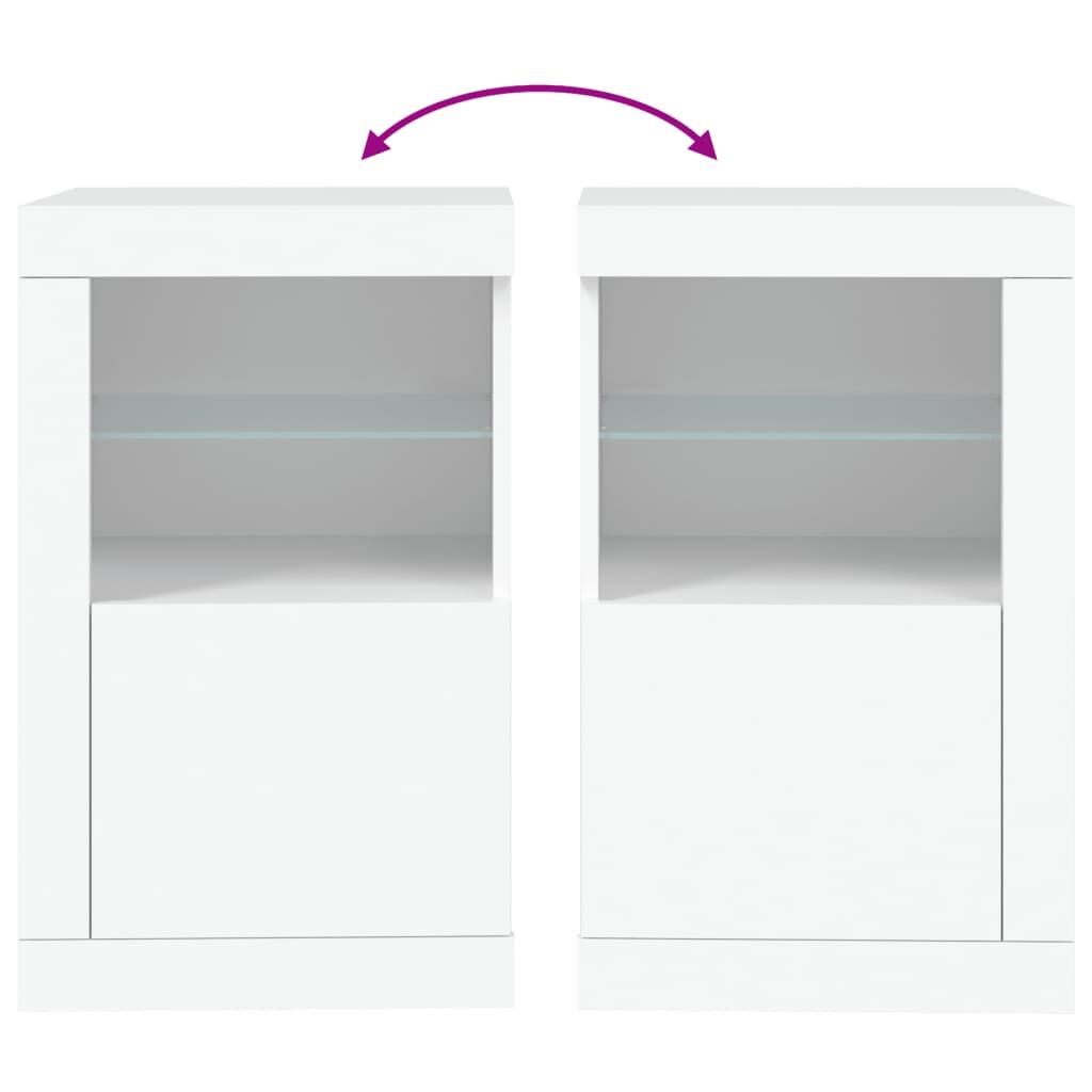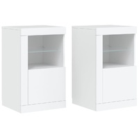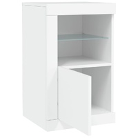 $215.09Featuring a trendy yet practical design, these side cabinets with LED lights will definitely become a focal point of your room. Durable material: The engineered wood is of exceptional quality with smooth surface and also features strength, stability and resistance to moisture.RGB LED lights: The cupboard is equipped with vibrant RGB LED lights. With various customisable menus, you can effortlessly change the colour of the lights and even set them to adjust automatically. These LED lights not only enhance the contemporary look of the cabinet but also add to its trendy appeal.Ample storage space: The storage cabinet features a glass shelf and a concealed storage area behind its doors, offering plenty of space to keep your everyday items neatly arranged and easily accessible.Flexible door: You can install the door either on the left side or right side based on your own needs. Good to know:The product has a USB connector that requires a certified 5V USB power source (not included). Warning:In order to prevent overturning, this product must be used with the wall attachment device provided.