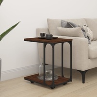 NOW $64.16Give your living room a unique industrial makeover with this stylish side table! Sturdy material: The engineered wood is of exceptional quality with smooth surface and also features strength, stability and resistance to moisture.Storage function: The coffee table provides ample storage space for keeping your magazines, books, remote controls and other small items well organised and within reach.Practical top: The sturdy tabletop is perfect for placing your drinks, food and other decorative items.C-shape design: The C-shaped design allows you to easily place the lower part of the lamp table under sofas, beds, tables and loungers, saving space and convenient to use.Easy to move: This end table can be easily moved to any spot you prefer, with the included four swivel wheels. And 2 wheels are lockable, which keeps the sofa table in position and adds stability. Good to know:To make assembly as easy as possible, each product is delivered with a manual.