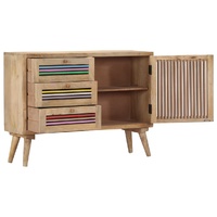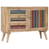 $378.89This wooden sideboard oozes an elegant charm that will add a truly eye-catching piece to your home decor. The cabinet is made of solid mango wood, a hardwood with dense grains. Rough mango wood not only has the strength to bear the weight, but also stands the wear and tear of time. Accordingly, this beautifully-designed dressoir is exceedingly stable, durable and aesthetically-appealing. The exquisite wood grains make every piece of furniture distinctive and slightly different from each other. This dressoir features 3 drawers and 2 cabinets with 1 door, providing ample space for storing your shoes, books, as well as various other items. Important note: The wood grains vary from piece to piece, making each piece unique. The delivery is random, ensuring the exclusivity and individuality of your product. WARNING: In order to prevent overturning, this product must be used with the wall attachment device provided.