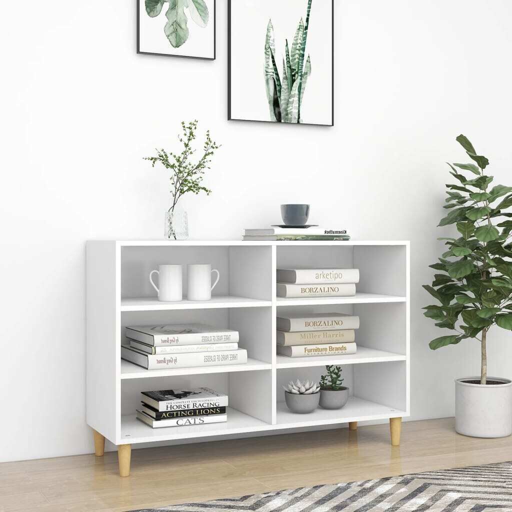 Upgrade your interior to the next level with this well-designed and chic sideboard, featuring a Scandinavian charm. This book cabinet with four wood legs is stable and sturdy. The side cabinet features 6 shelves, providing ample storage space for storing knick-knacks and keeping your magazines, books, DVDs and multimedia devices well organised. The tabletop is ideal for displaying decorative objects, photo frames or potted plants. Additionally, the storage cabinet is easy to clean with a damp cloth.