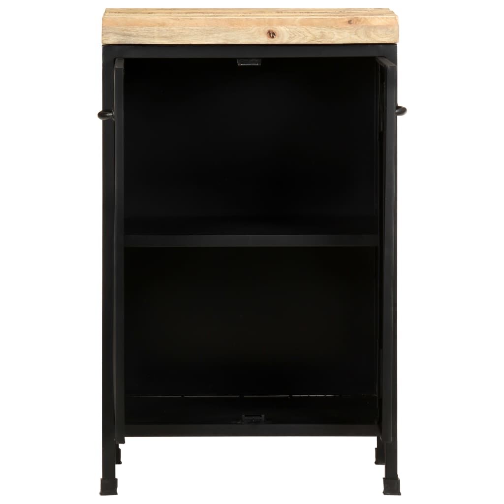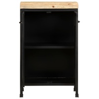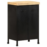 If you're looking for a simple touch of the rustic as well as industrial charm to add to your interior decor, this wooden sideboard will do the trick. The side cabinet is made of rough mango wood, a tropical hardwood with the strength to bear the weight. It also stands the wear and tear of time, making it stable and durable. The powder-coated iron frame also adds extra stability. This cupboard features 2 doors, providing ample storage space. Additionally, the sturdy wooden top is ideal for displaying decorative objects such as photo frames, potted plants, vases, etc. Important note: Colours and grains may vary from piece to piece, making each piece unique. The delivery is random, ensuring the exclusivity and individuality of your product.