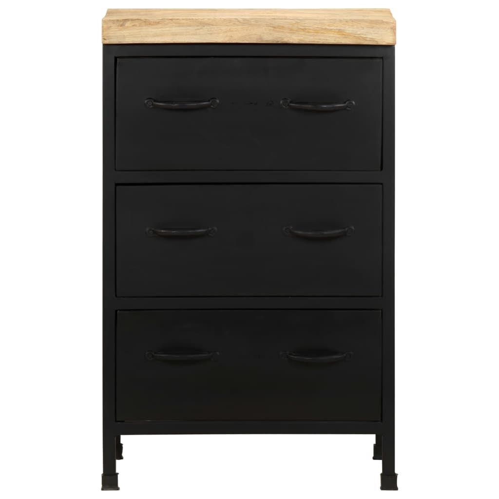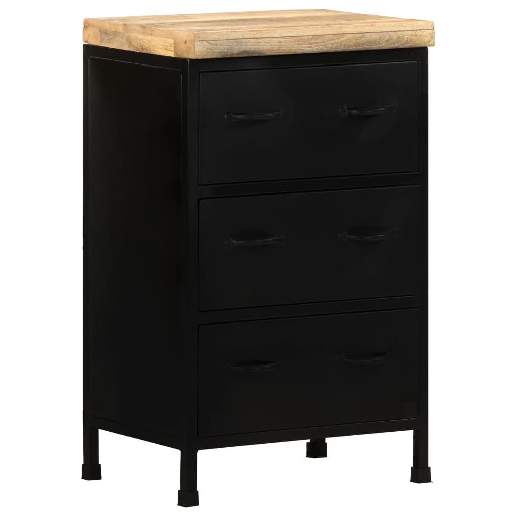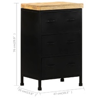 NOW $194.36If you're looking for a simple touch of the rustic as well as industrial charm to add to your interior decor, this wooden sideboard will do the trick. The side cabinet is made of rough mango wood, a tropical hardwood with the strength to bear the weight. It also stands the wear and tear of time, making it stable and durable. The powder-coated iron frame also adds extra stability. This cupboard features 3 drawers, providing ample storage space. Additionally, the sturdy wooden top is ideal for displaying decorative objects such as photo frames, potted plants, vases, etc. Important note: Colours and grains may vary from piece to piece, making each piece unique. The delivery is random, ensuring the exclusivity and individuality of your product.