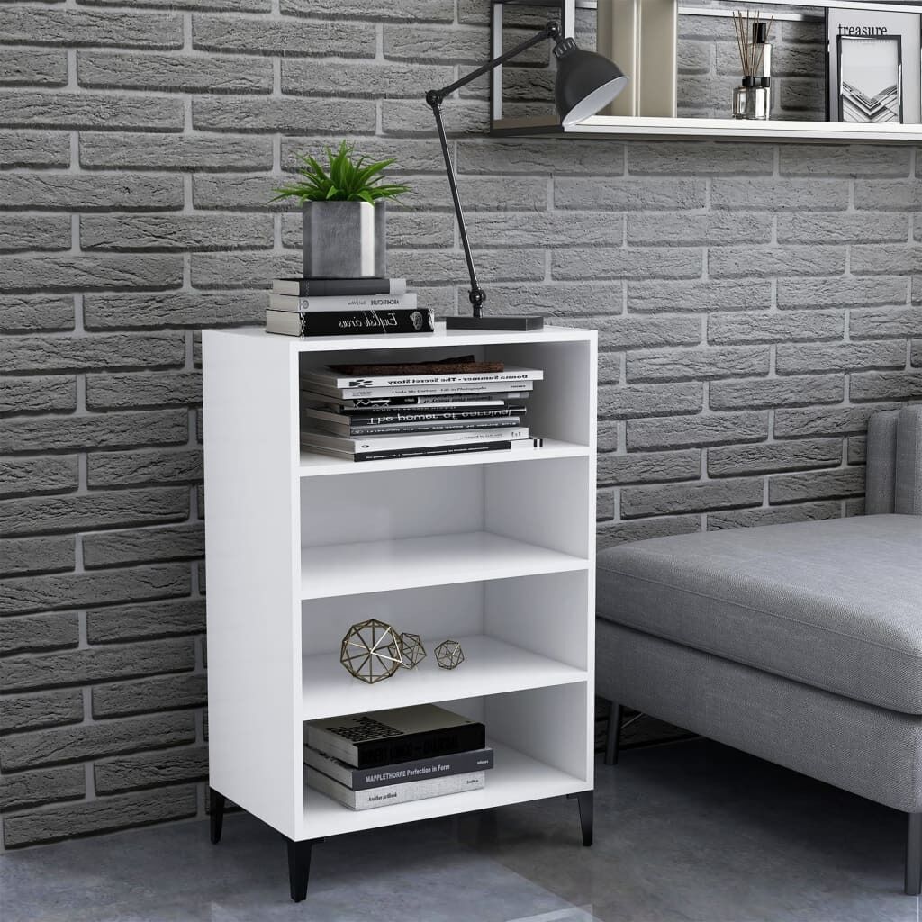 This sideboard will make a great addition to your living space. This book cabinet is made of board, which ensures its sturdiness, durability and long-lasting service. The metal legs also add extra stability. This side cabinet features 4 shelves, providing ample storage space. The sturdy tabletop is ideal for displaying decorative objects, photo frames or potted plants. Additionally, the storage cabinet is easy to clean with a damp cloth.