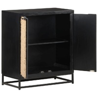 $251.99This wooden sideboard adds an industrial style to your living room. The side cabinet is made of solid mango wood, a tropical hardwood with the strength to bear the weight. It also stands the wear and tear of time, making it stable and durable. The door is made of natural jute and the iron base also adds extra stability. This storage cabinet features two doors providing ample storage space. Important note: Colours and grains may vary from piece to piece, making each piece unique. The delivery is random, ensuring the exclusivity and individuality of your product.